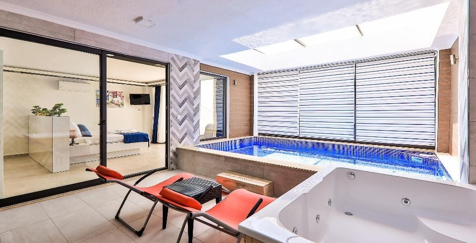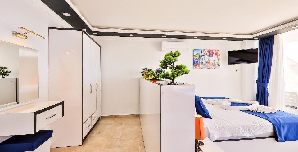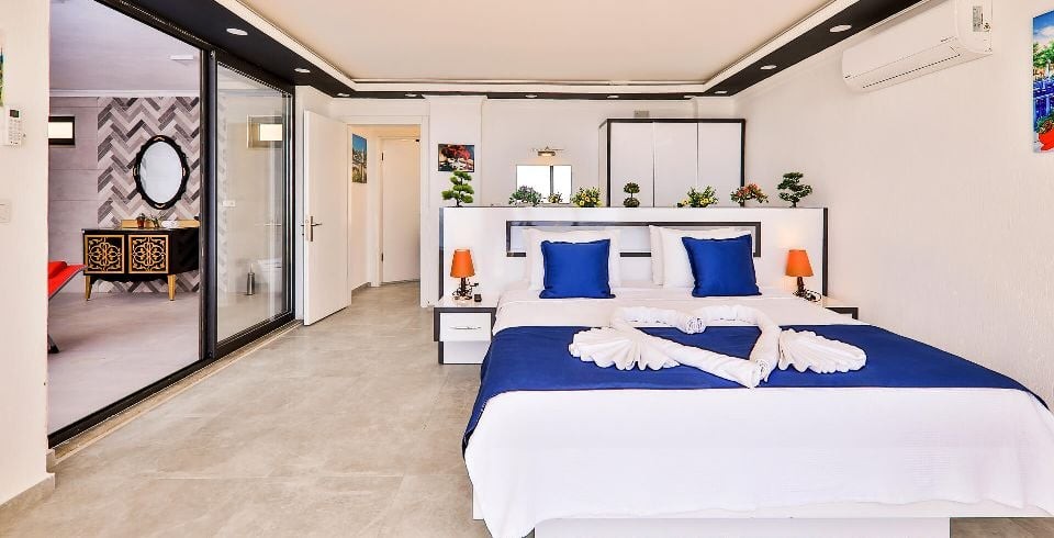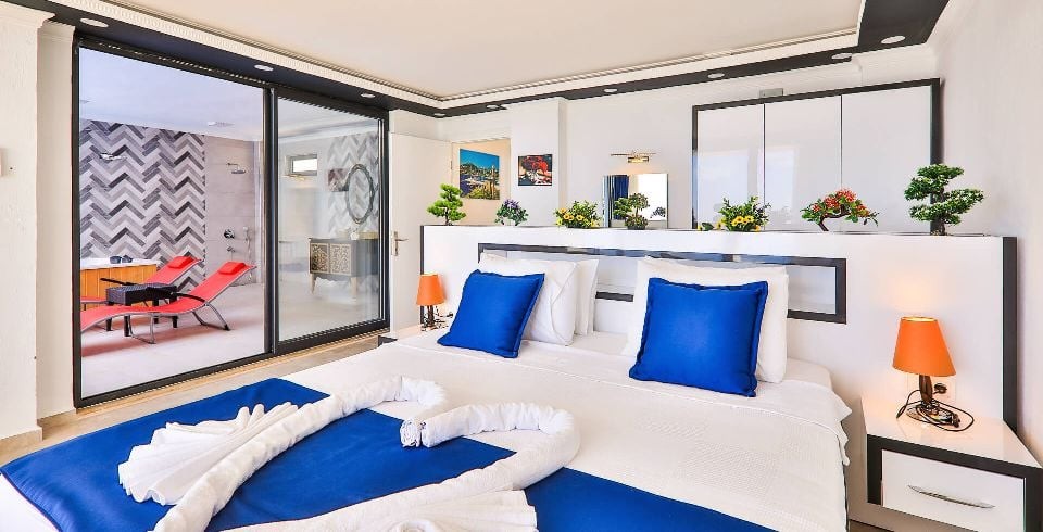 1. Yatak Odası : 1 adet çift kişilik yatak, klima, komodin, elbise dolabı, makyaj masası, jakuzi, ısıtma havuzu, balkon, banyo ve tuvalet bulunmaktadır.