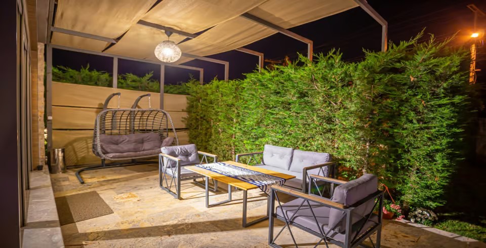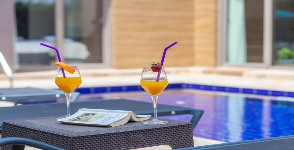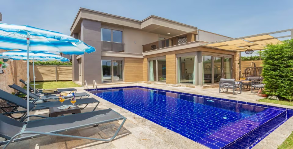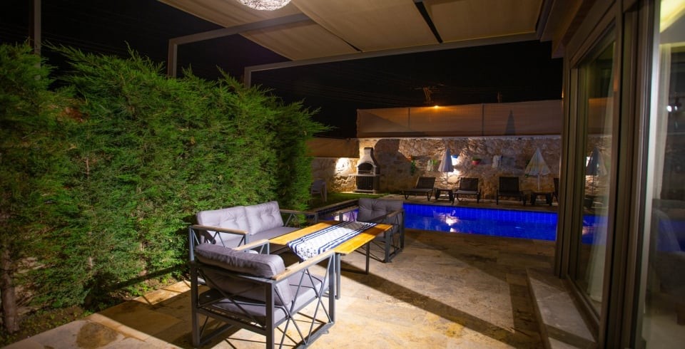 Havuz ve Bahçe : Villamız özel bahçesinde özel yüzme havuzu, güneşlenme terası, şezlong, güneş şemsiyesi, bahçe masası ve sandalyeler, taş barbekü, duş bulunmaktadır. Villa bahçesinde özel havuz bulunmaktadır. Bahçe ve havuz bakım ve temizliği günde 1 kez sabah veya akşam yapılmaktadır.