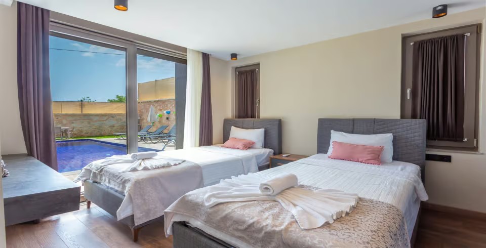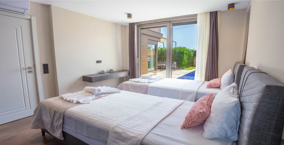 3.Yatak Odası : Klimalı 2 adet tek kişilik yatak bulunmaktadır. Elbise dolabı, komodin, banyo, tuvalet, makyaj masası, kurutma bulunmaktadır.