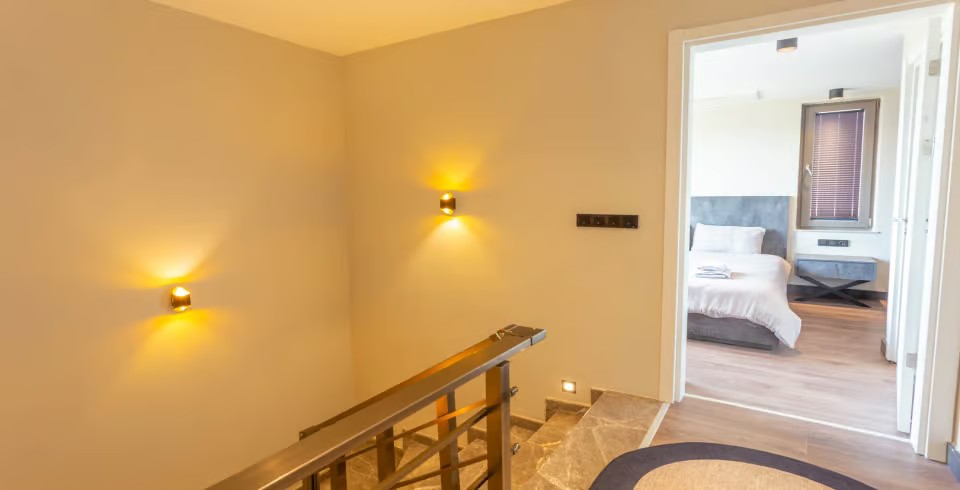 1. Yatak Odası : Klimalı suit aile yatak odası olup,  1 adet çift kişilik yatak , elbise dolabı , makyaj masası , komodin ,  balkon, banyo ve tuvalet bulunmaktadır.