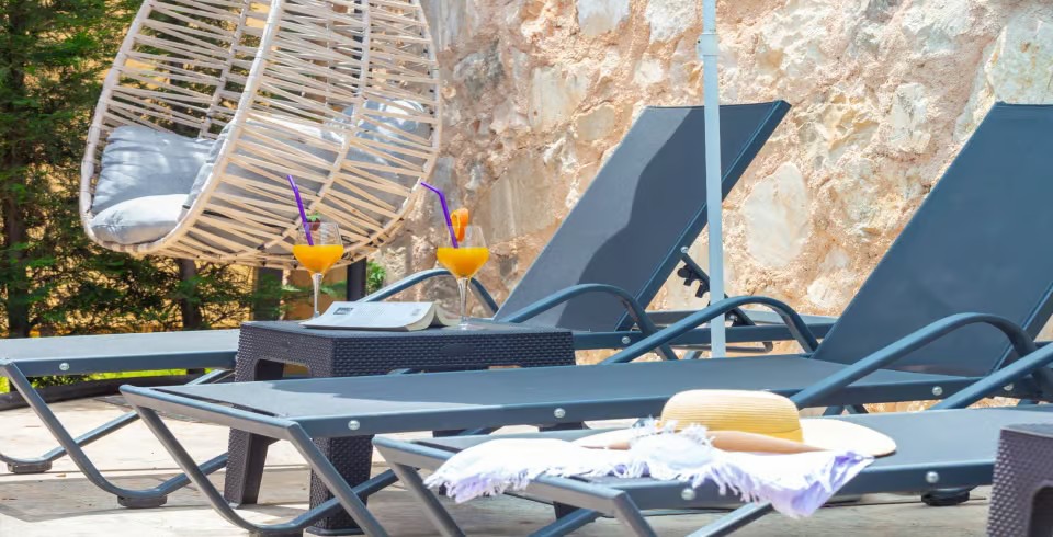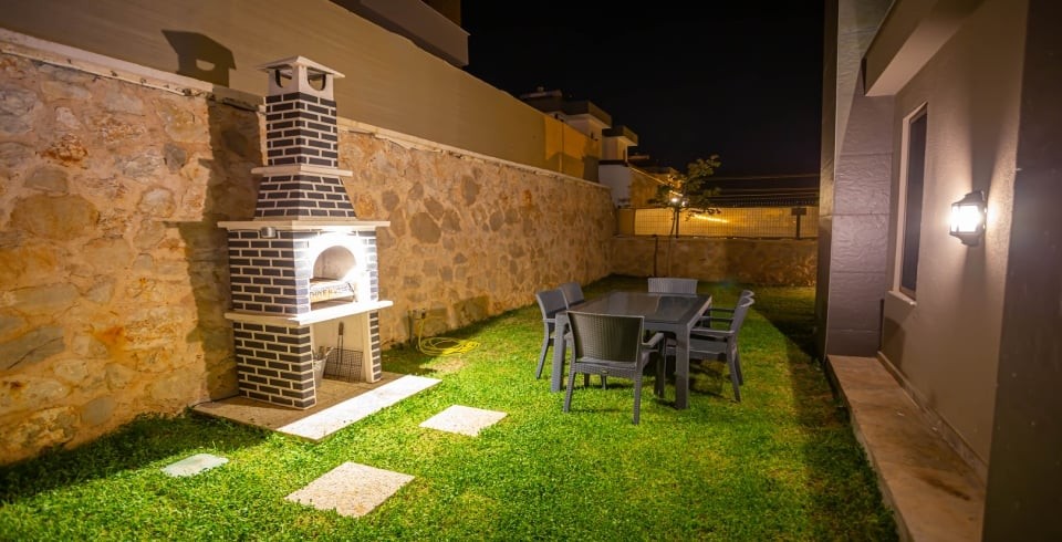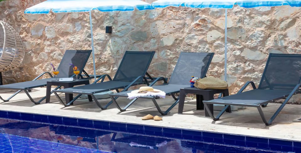 Havuz ve Bahçe : 1.60 santimetre sığ özel yüzme havuzunun içinde şezlong bulunan bahçemizde ekstra şezlonglar, şemsiye, yemek masası, salıncak ve barbekü alanı bulunmaktadır.