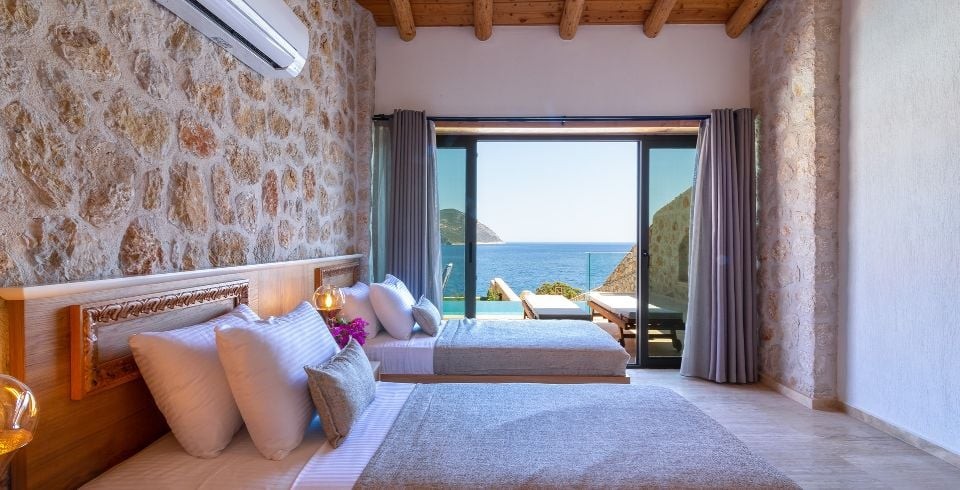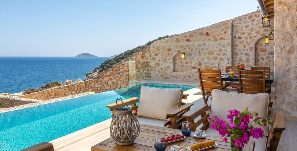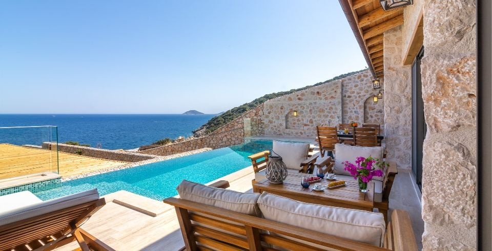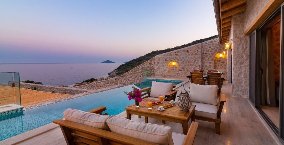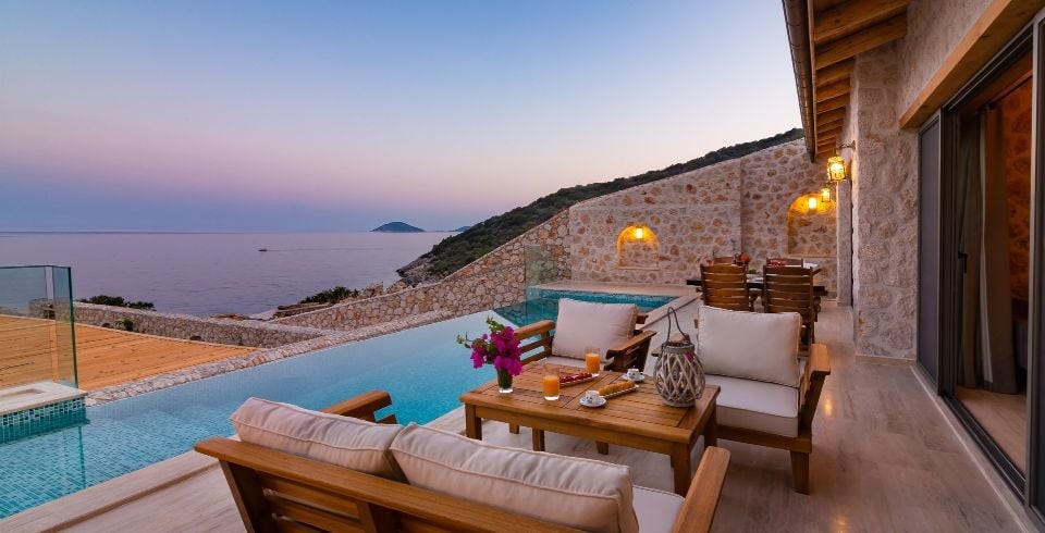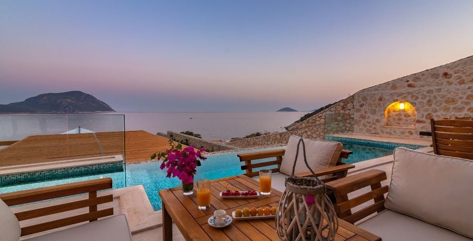 Villa Water Edge 3; Kalkanın en güzel bölgelerinden Kalamar bölgesinde yer alan 2 yatak odalı 4 kişilik konaklama kapasitesine sahip lüks bir villadır. Özel yüzme havuzlu kiralık villamız taş ve ahşap mimariye sahip 2021 yılında hizmete açılan bir villamızdır. Villamız muhteşem bir deniz manzarasına sahip olup modern ve lüks mobilyalarla dizayn edilmiş olup ailenizle ve arkadaşlarınızla eğlenceli vakitler geçirmenizi sağlamaktadır. Denize sıfır olan bu villamızın kendine ait özel iskelesi bulunmaktadır, tatilinizde trafik sorunu yaşamadan hemen yürüyerek denize inerek özel iskelede denizin ve güneşin tadını çıkartabilirsiniz.