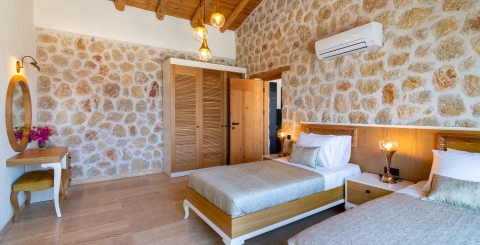 2. Yatak Odası : 2 adet tek kişilik yatak, klima, komodin, elbise dolabı, makyaj masası, banyo ve tuvalet bulunmaktadır.