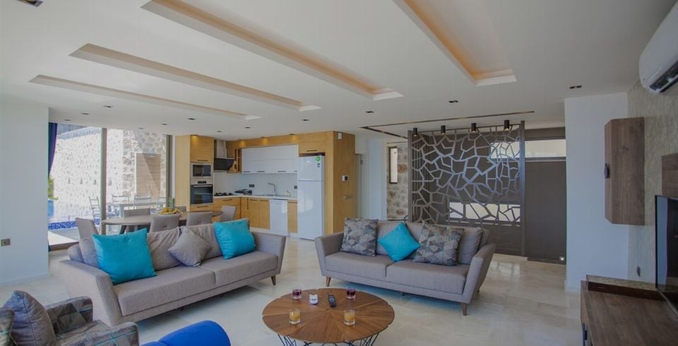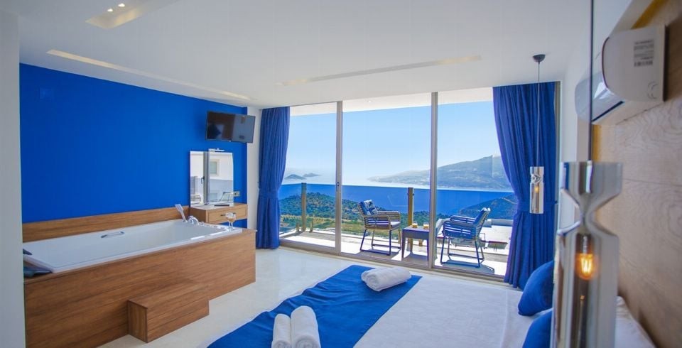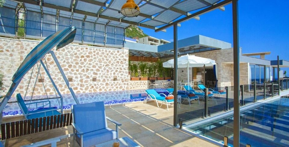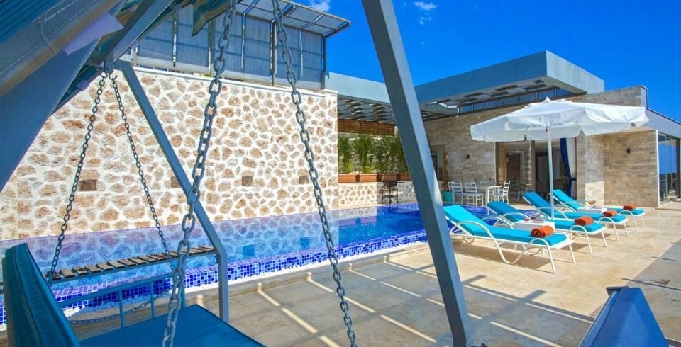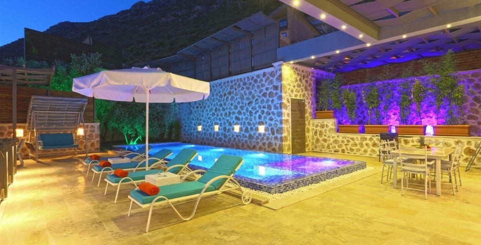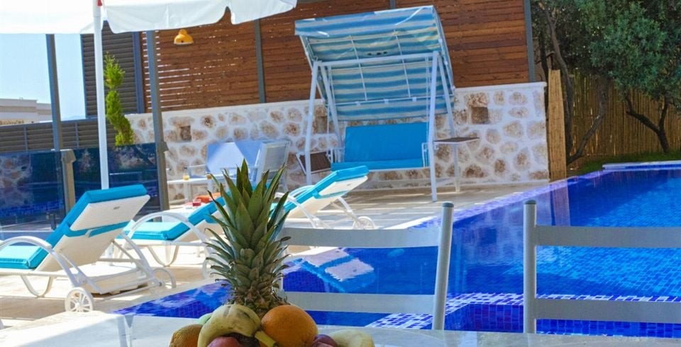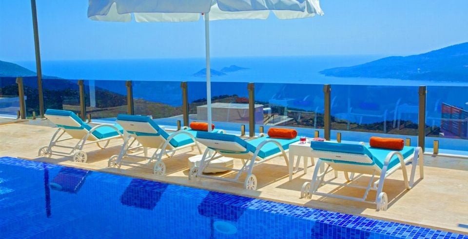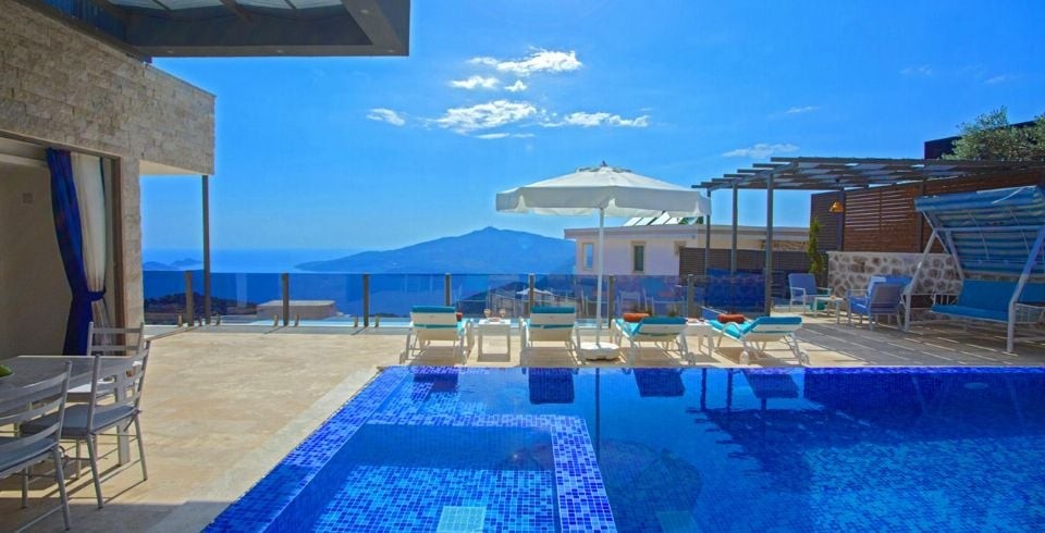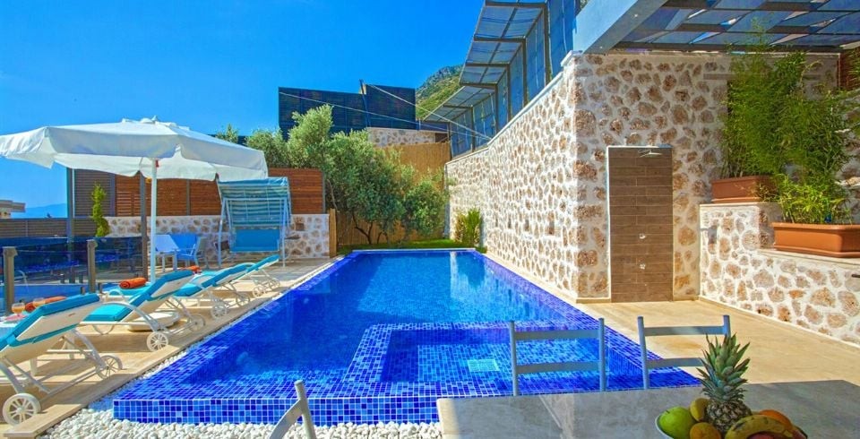 Yazlık kiralık villamız Kalkan Kördere bölgesinde bulunmaktadır. 3 yatak odalı 6 kişilik kapasiteye sahip olan villamız özenle dizayn edilmiş olup çift kişilik süit yatak odasında jakuzi bulunmaktadır. Ayrıca villa içerisinde bulunan iç havuzda da yaz kış aktif halde kullanılmaktadır. Muhteşem deniz ve doğa manzarasına sahip olan ve sessizliğin, huzurun bir arada olduğu villamızda havuz terası korunaklı olup dışarıdan gözükmemektedir. Genellikle balayı çiftlerimizin de tercihi olan villamızın içerisinde sauna, hamam bulunuyor. Eğlence alanı olarak da villamızda Langırt, Masa tenisi, Air Hockey bulunup keyifli zamanlar geçirebilirsiniz.