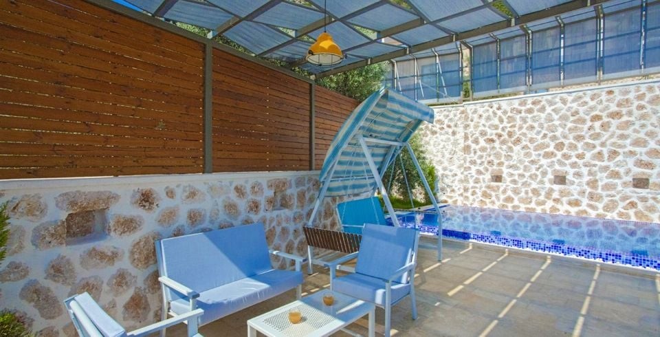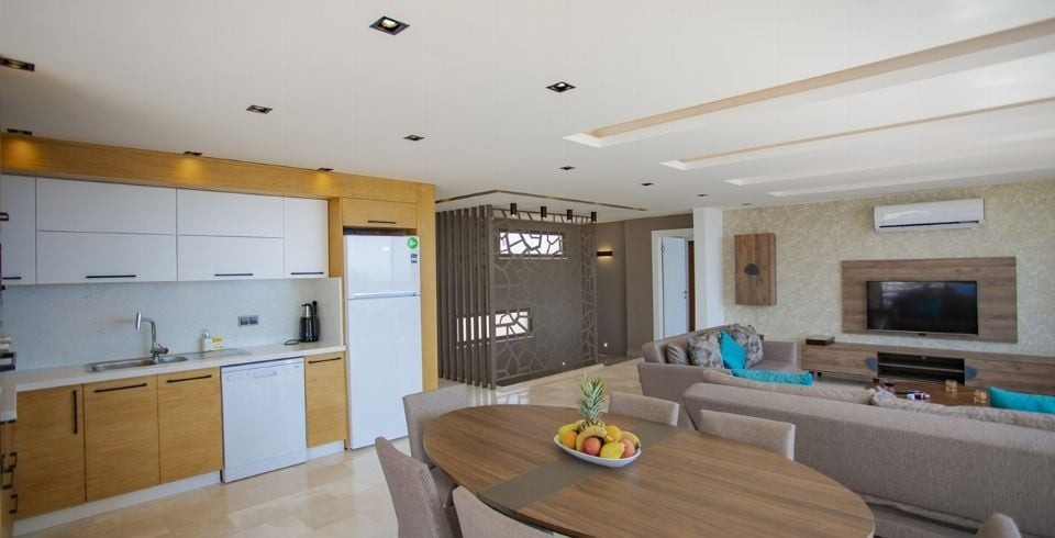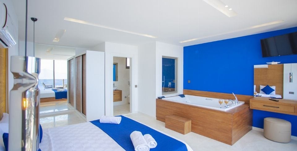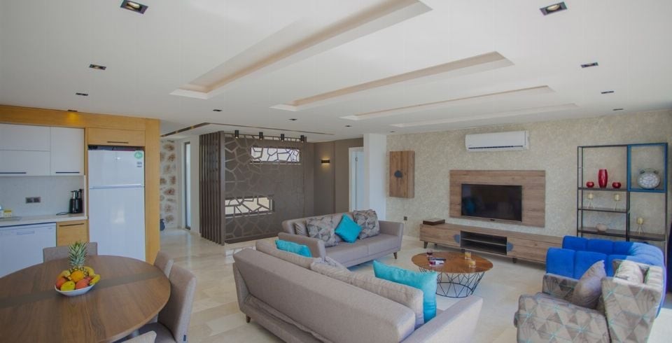 Salon : Oturma grubu, uydu alıcı, TV, klima, lavabo, ütü, ütü masası, havuz kenarına çıkış ve kablosuz modem bulunmaktadır.