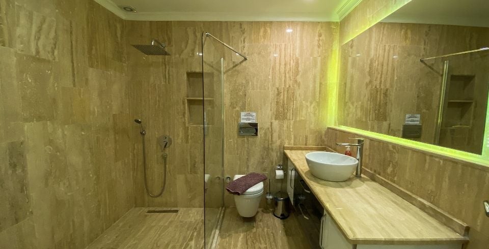 Mutfak: Amerikan mutfak bulunmaktadır. Mutfakta mikrodalga fırın, bulaşık makinası, ankastre fırın, buzdolabı, çamaşır makinası, ankastre 4’lü ocak, elektrikli su ısıtıcı kettle, ekmek kızartma makinası, tencere ve tava takımı , yemek takımı, kaşık ve çatal seti ve bardaklar bulunmaktadır. Mutfak havuz katındadır.