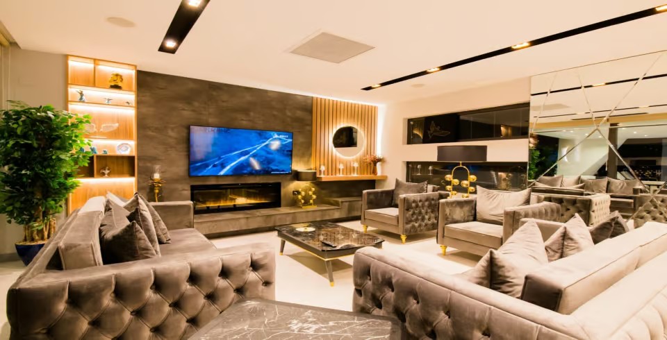 Salon : Salon içerisinde oturma grubu, TV, klima, sehpa, yemek masası, internet bulunmaktadır. Havuz terasına çıkış yapılabilmektedir.