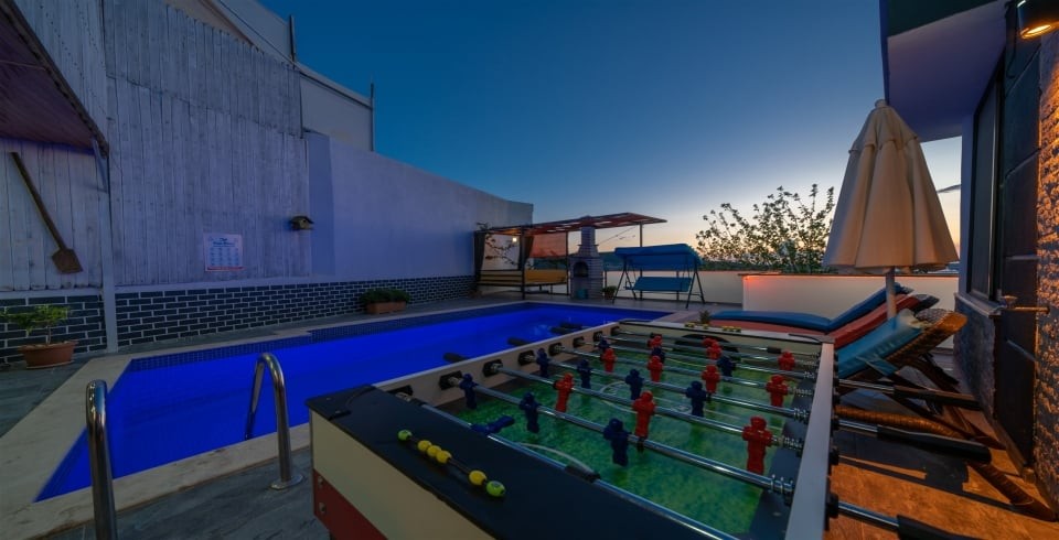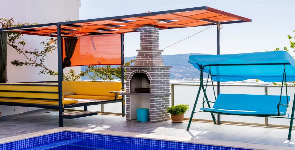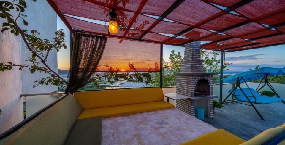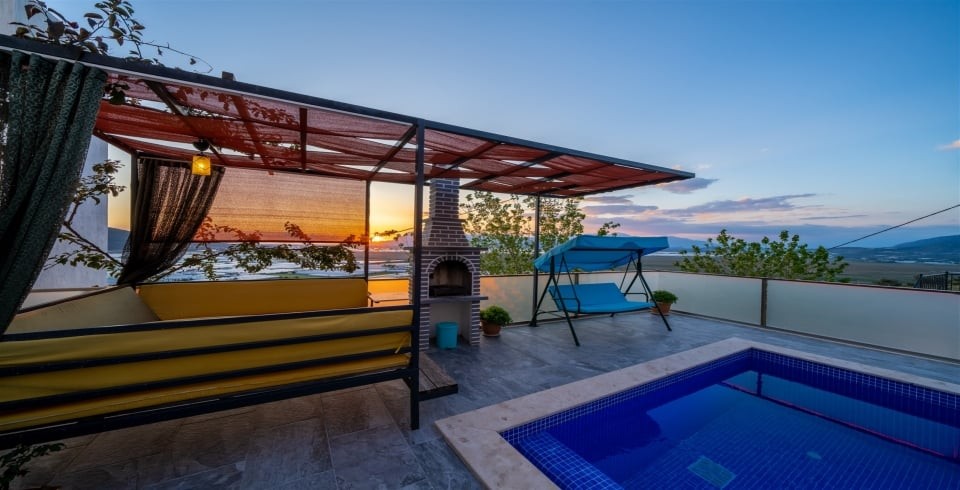 Bahçe: Villamızın bahçesinde özel yüzme havuzu, güneşlenmeniz için 4 adet şezlong, güneşlenme terası, 4 kişilik masa, oturma grubu, mangal keyfiniz için barbekü, güneş şemsiyesi bulunmaktadır.