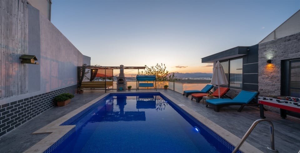 Havuz: Villamızın havuzu ise etrafı dışarıdan görülmeyecek şekilde korunaklı olup sizlere huzurlu ve keyifli havuz deneyimi sunmaktadır. Size özel muhafazakâr yüzme havuzu, şezlong keyfi ve şemsiye ile yazın en güzel günlerinde sizleri bekliyor.