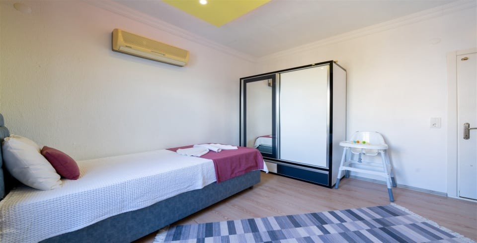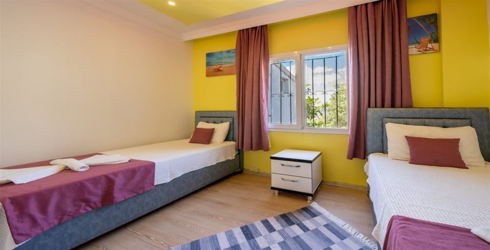 2. Yatak Odası: iki tane tek kişilik yatakla beraber klima, elbise dolabı, makyaj masası, komodin, banyo ve lavabodan oluşmaktadır.