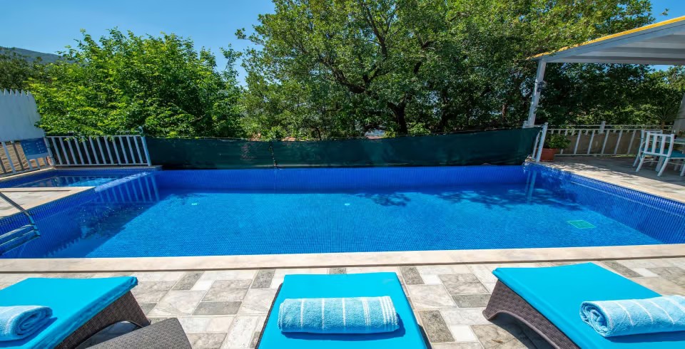 Havuz ve Bahçe: Bahçe içerisinde korunaklı özel yüzme havuzu, şezlong , yemek masası ve sandalyeler, bahçe oturma grubu, salıncak ve barbekü yer almaktadır.