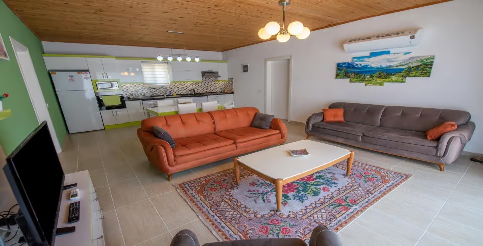 Salon: Konforlu oturma grubu, TV, orta sehpa , klima bulunmaktadır.