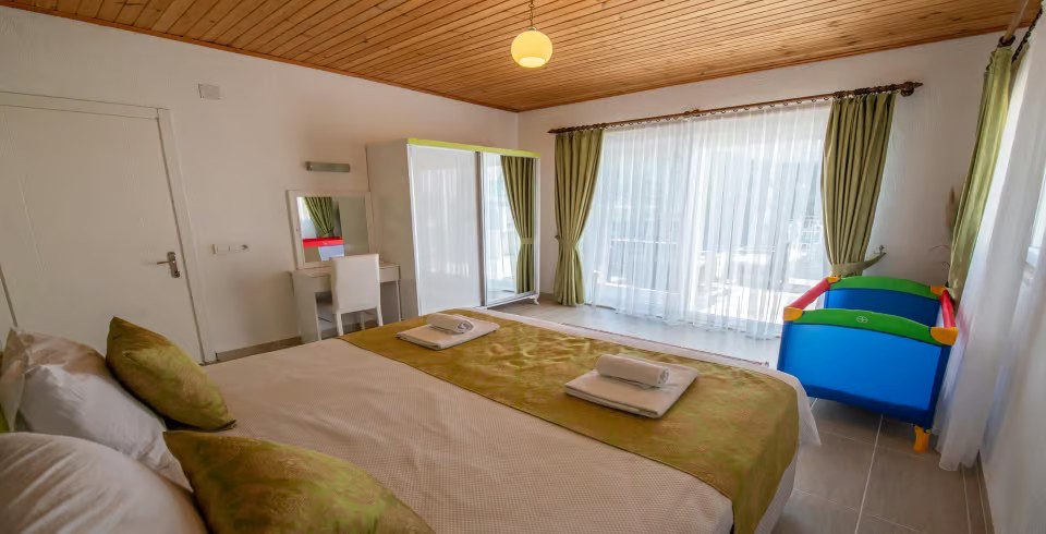 2.Yatak Odası: 2 adet tek kişilik yatak, komodin, makyaj masası, klima, elbise dolabı, banyo ve lavabo bulunmaktadır.