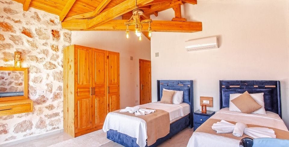 2. Yatak Odası:  2 adet tek kişilik  yatak, klima, komodin, elbise dolabı, makyaj masası, banyo ve tuvalet bulunmaktadır.