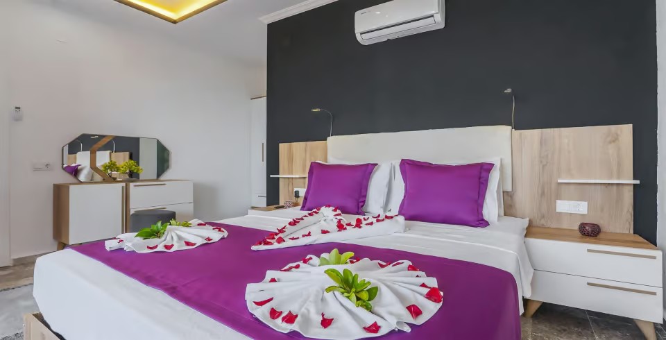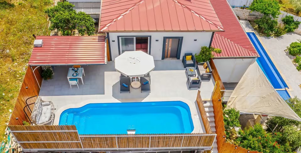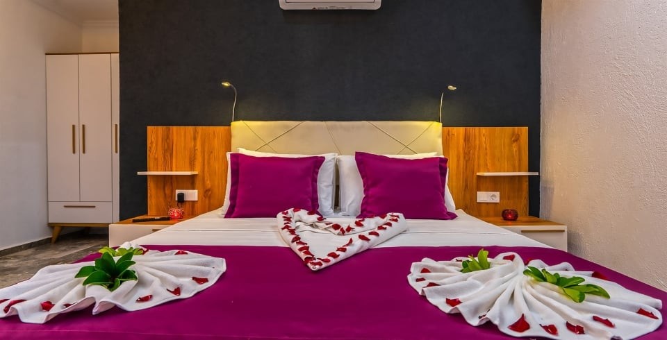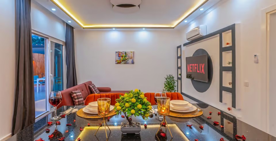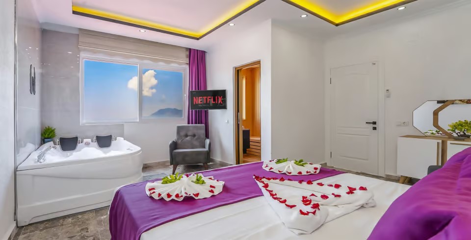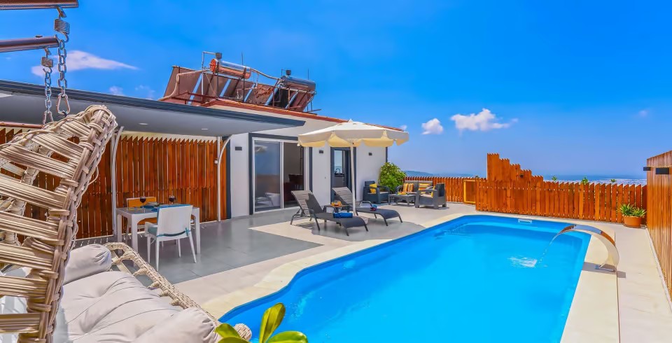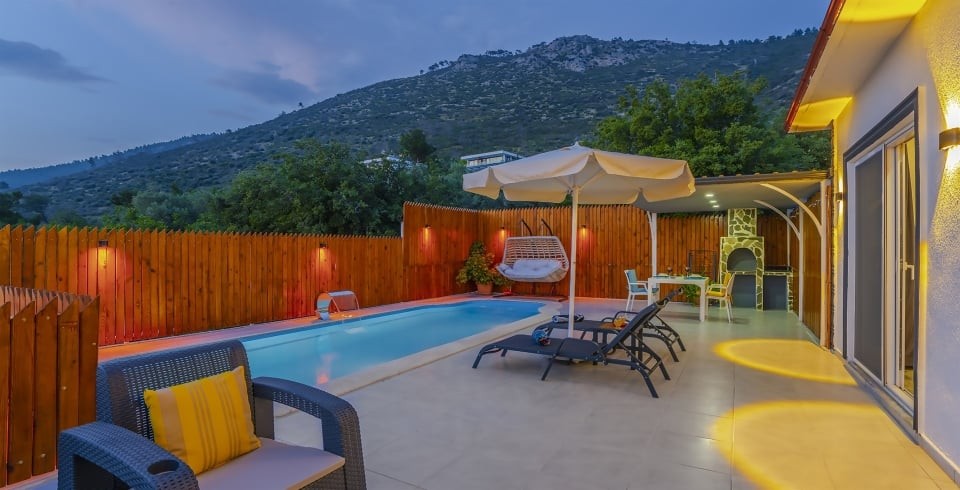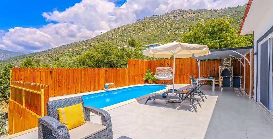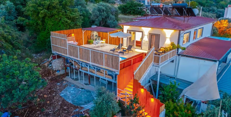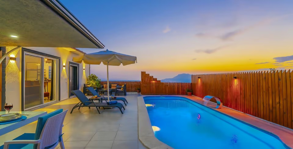 Kalkan’ın huzur dolu Üzümlü bölgesinde yer alan Villa Yiğit Üzümlü, doğanın içinde romantik ve konforlu bir tatil sunan özel bir balayı villası. 1 yatak odası ve 2 kişilik kapasitesi, şık ve modern tasarımıyla çiftler için unutulmaz bir kaçış noktası sağlıyor. Jakuzisi ve saunası, günün yorgunluğunu atarken rahatlamanızı sağlarken, villa doğayla iç içe sakin bir atmosfer sunuyor.