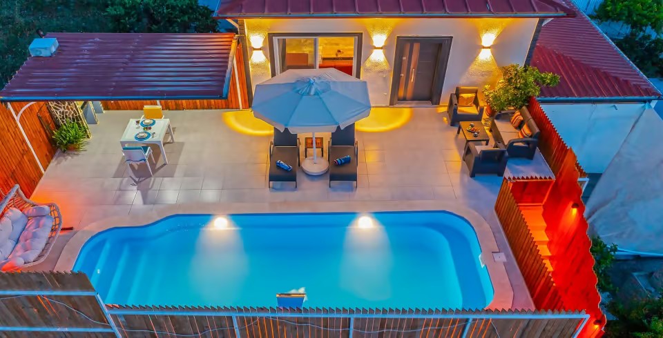 Havuz ve Bahçe : Özel havuz, şezlong, şemsiye, yemek masası,oturma grubu,salıncak ve barbekü bulunmaktadır.