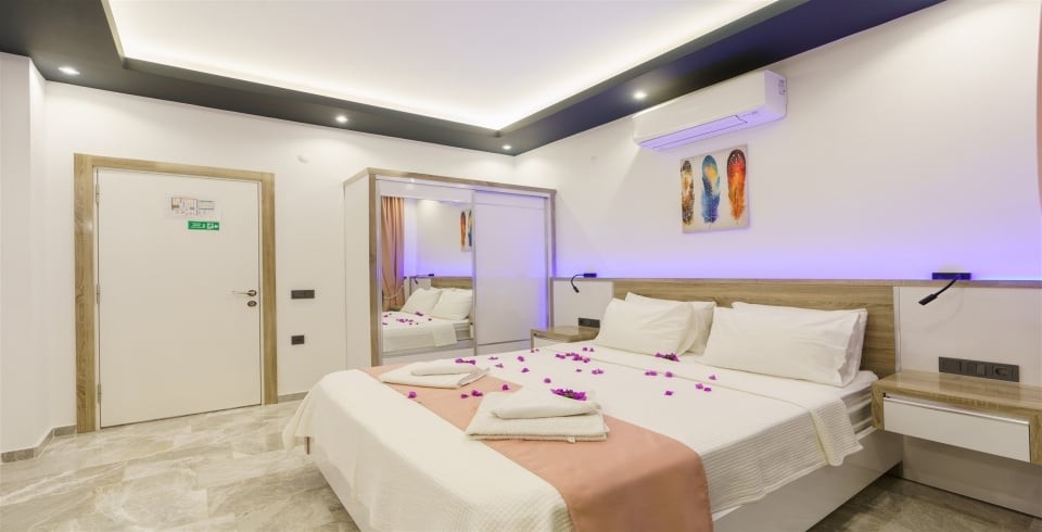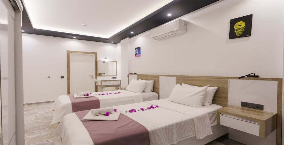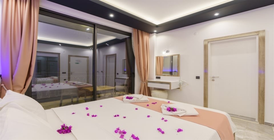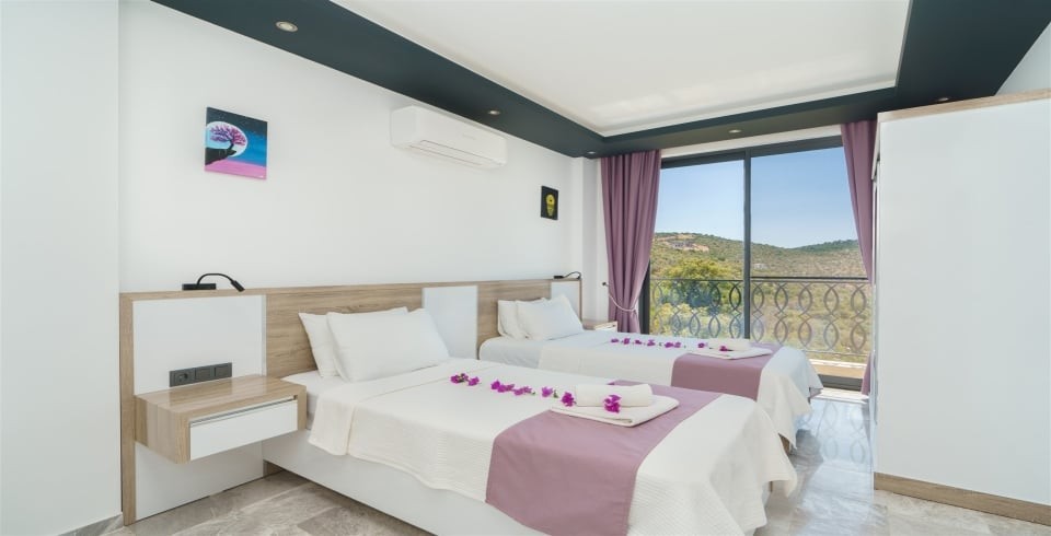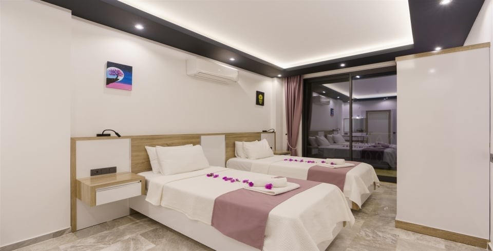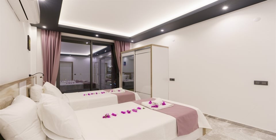 3. Yatak Odası : 2 adet tek kişilik konfor yatak, , klima, komodin, makyaj masası, banyo-WC ve havuz terasına çıkış yer almaktadır.