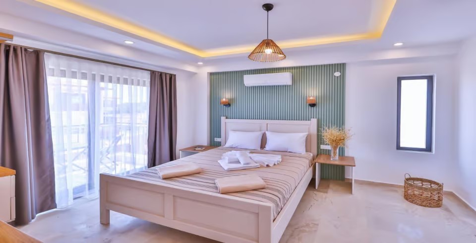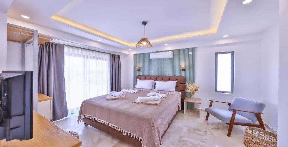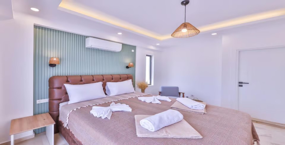 1. Yatak Odası : Çift kişilik bir adet yatak, elbise dolabı, komodin, klima, banyo ve tuvalet bulunmaktadır.