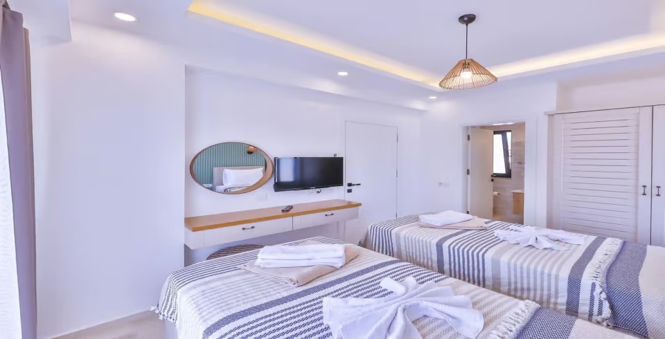 2. Yatak Odası : Tek kişilik iki adet yatak, elbise dolabı, komodin, klima, banyo ve tuvalet bulunmaktadır.