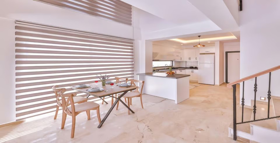 Salon : Villamızın iç dizaynı da son modaya uygun olarak modern bir şekilde tasarlanmıştır. Çeşitli dekoratif eşyalarla süslediğimiz salonumuz havuzlu bahçeye açılıyor. Villa salonunda rahat oturma grubu, TV, klima yer almaktadır.