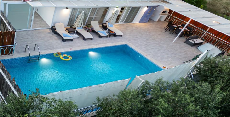 Havuz ve Bahçe : Özel yüzme havuzu, yemek masası, şezlong, şemsiye, oturma grubu, salıncak ve barbekü bulunmaktadır.
