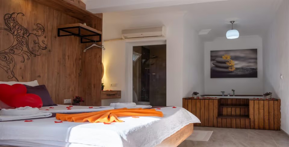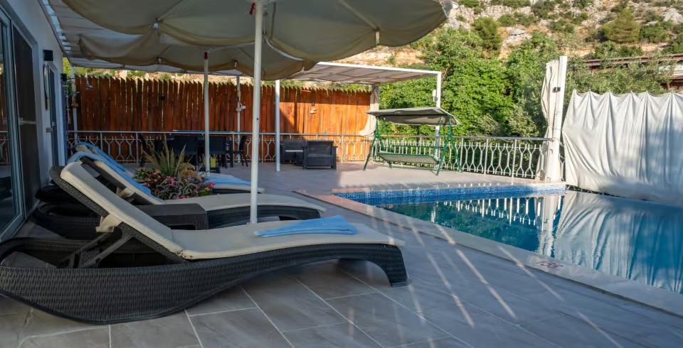 Villa Zehra, Kalkan İslamlar bölgesinde yer alan bu zarif villa, doğayla iç içe huzurlu bir tatil arayanlar için mükemmel bir tercihtir. İki yatak odalı, dört kişilik konaklama kapasitesine sahip olan villa, özel yüzme havuzu ve muhafazakar özellikleriyle dikkat çekiyor. Villada bir çift kişilik yatak odasında jakuzi yer alırken, diğer odada ise rahat bir konaklama imkanı sunan iki tek kişilik yatak bulunmaktadır.