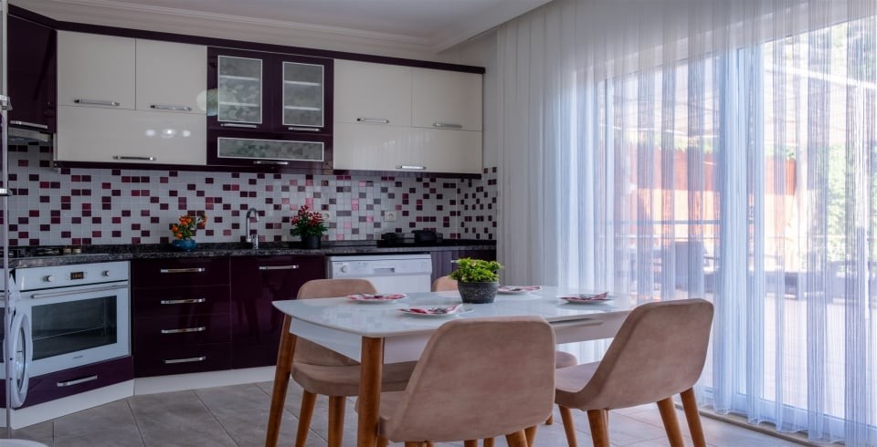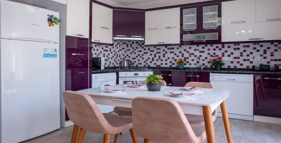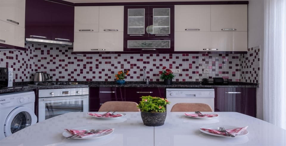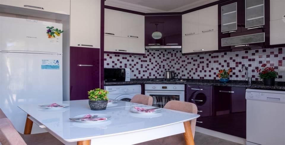 Mutfak :Buzdolabı, çamaşır makinesi, kahve makinası, 4’lü ocak, tost makinesi, mikrodalga fırın, elektrikli su ısıtıcısı, çatal-bıçak takımı, tencere-tava takımı, bulaşık makinesi bulunmaktadır.