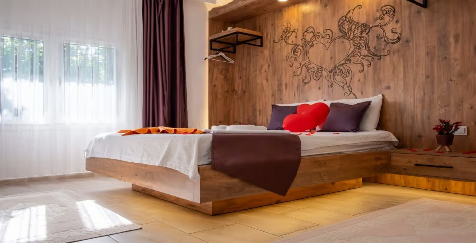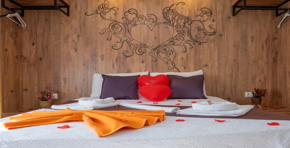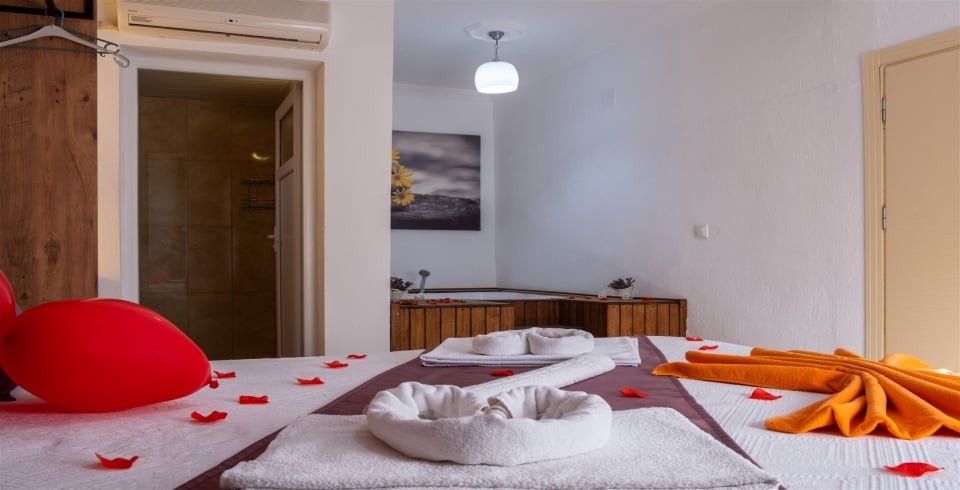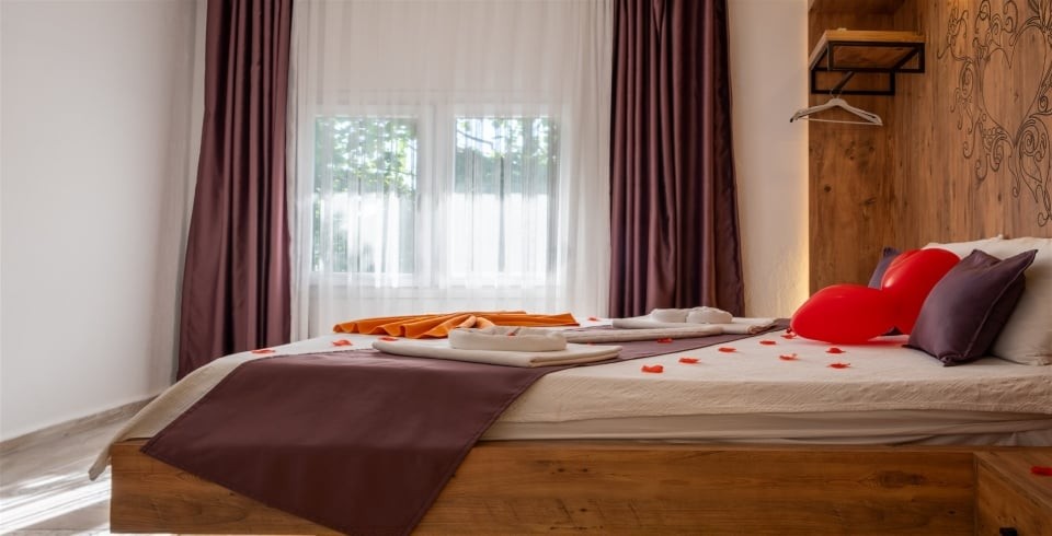 1. Yatak Odası : Çift kişilik yatak, elbise dolabı, makyaj masası, klima, jakuzi, banyo ve tuvalet bulunmaktadır.