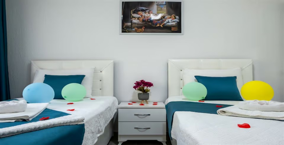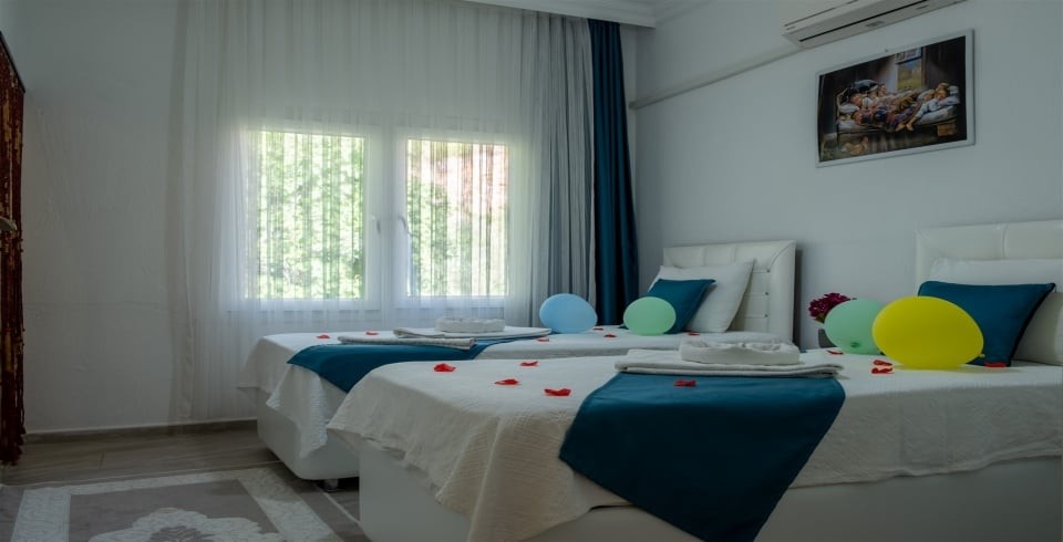 2. Yatak Odası : 2 adet tek kişilik yatak, elbise dolabı, klima, banyo ve tuvalet bulunmaktadır.