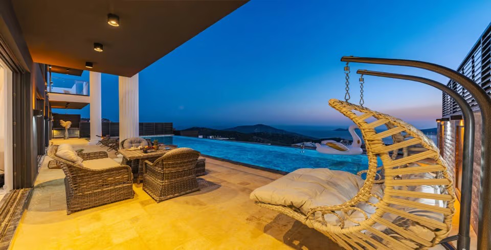 Villa Zek Kalkan, Kalkan Kördere mevkinde konumlanmakta olan muhteşem deniz ve doğa manzarasına hakim kiralık villalarımız arasında yer almaktadır. Lüks ve modern bir şekilde dekore edilen yazlık villamızda 4 adet yatak odası bulunmakta olup 8 kişiye konaklama imkanı sağlamaktadır. Yatak odalarının bir tanesinin içerisinde tüm yılın vermiş olduğu yorgunluğu giderebileceğiniz jakuzi yer almaktadır. Her bir detayın en ince ayrıntısına kadar düşünüldüğü kiralık villamızın havuz ve havuz terası korunaklı hale getirilmiştir. Muhafazakar aileler, balayı çiftleri ve geniş aileler rahatlıkla tercih edebilirler. Aynı zamanda villamızda kapalı ısıtma havuzu, sauna, hamam ve dış özel yüzme havuzuna entegre sığ havuz bulunmaktadır. Ayrıca villamızda tatilinizi daha eğlenceli bir hale getirebilmek adına langırt, masa tenisi ve mini bar alanı yer almaktadır. Sessizlik ve sakinlik içerisinde huzur dolu bir yazlık villada tatil için Villa Zek Kalkan’ ı tercih edeblilirsiniz.