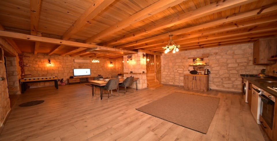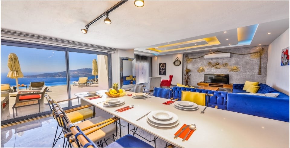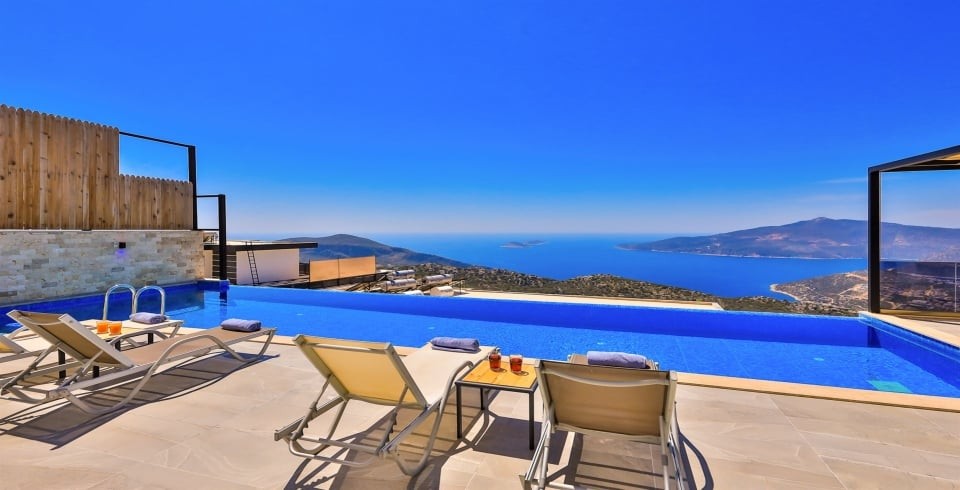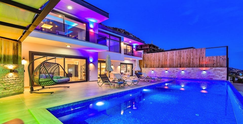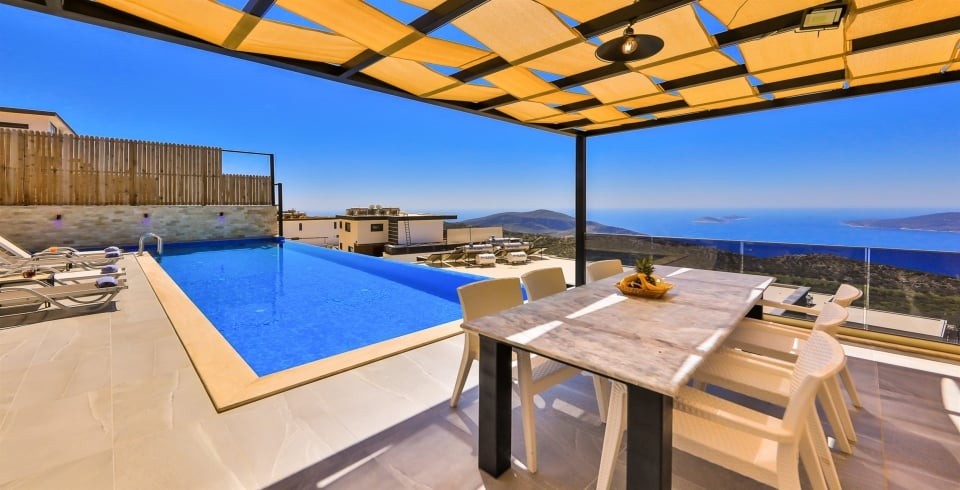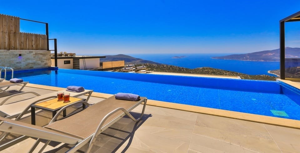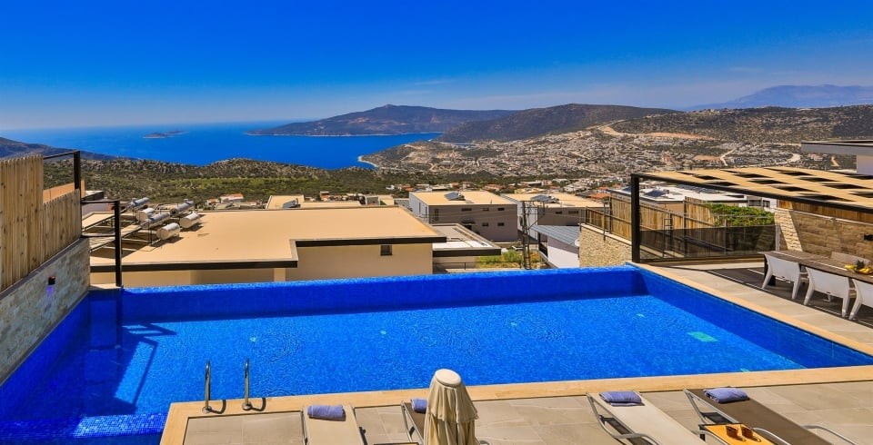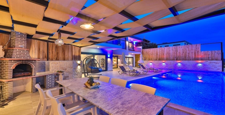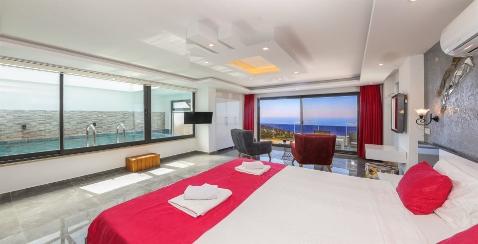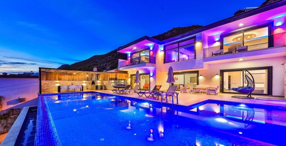Kalkan Kördere bölgesinde ful deniz manzarasına sahip oldukça keyifle döşenmiş Lüks muhafazakar kiralık villamızdır. Villamız geniş havuz terası ve salon mutfağı ile diğer kiralık villa seçeneklerimiz arasında öne çıkan özelliklerindendir. Villamızın yatak odası içerisinde kış aylarına uygun dizayn edilmiş ısıtmalı kapalı havuzu bulunmaktadır. Ancak iç havuzun ısıtma sistemi kış aylarında açılmakta olup kullanıma sunulmaktadır. Diğer aylar için ise normal havuz olarak kullanım sağlanmaktadır. Villamızdan Kalkan Merkeze araç ile 8-10 dk. arasında ulaşım sağlanmaktadır. Villamızın 3 yatak odası bulunmakta olup bir tanesinde jakuzi diğerinde ise ısıtma havuz mevcuttur.