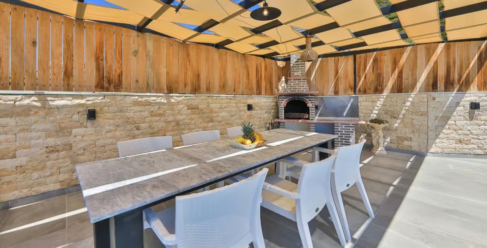 Bahçe : Bahçe içerisinde özel yüzme havuzu, şezlonglar, güneş şemsiyesi, bahçe mobilyaları,, barbekü bulunmaktadır.