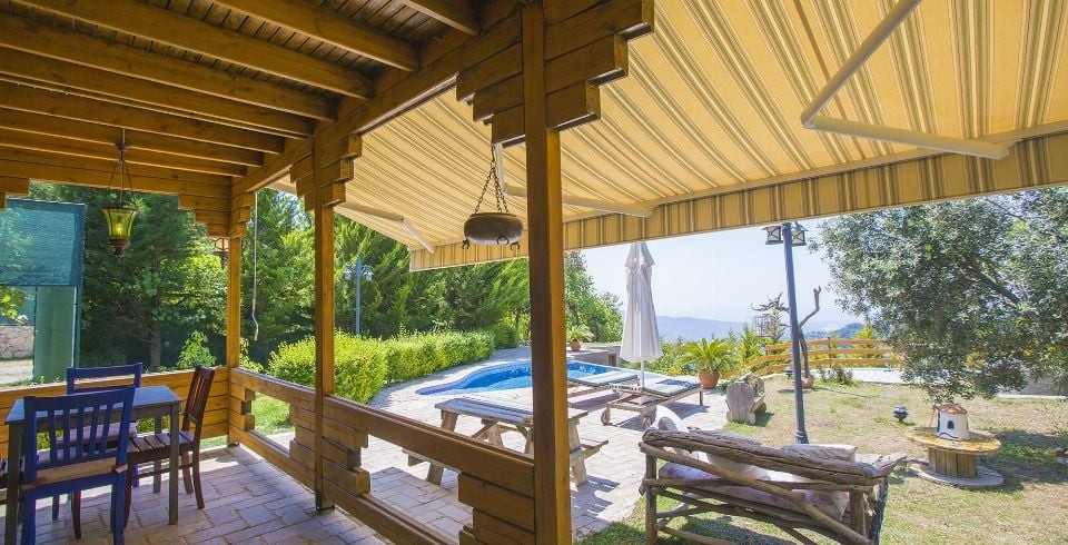 Bahçe : Villamızın bahçesinde özel yüzme havuzu, güneşlenmeniz için 4 adet şezlong, 4 kişilik masa, mangal keyfiniz için barbekü, güneş şemsiyesi bulunmaktadır.