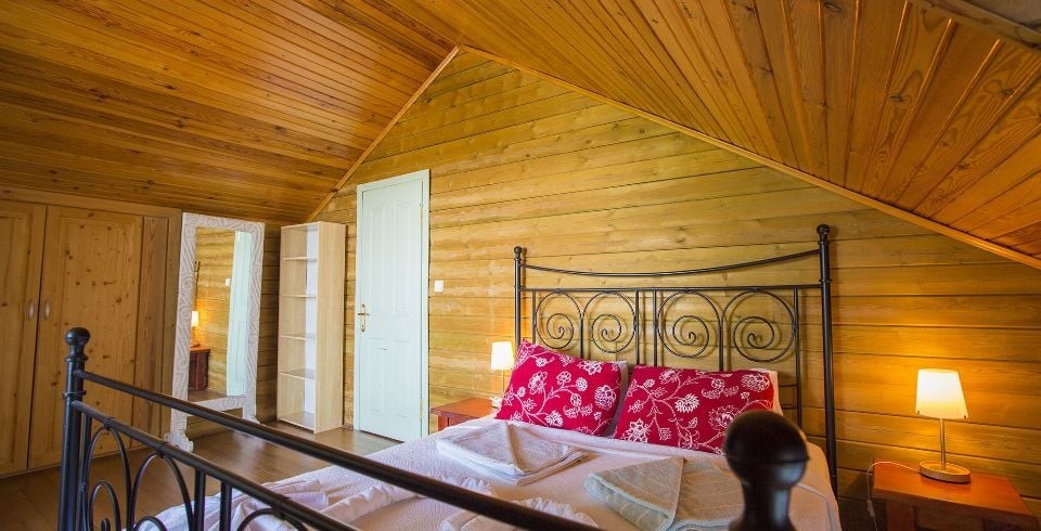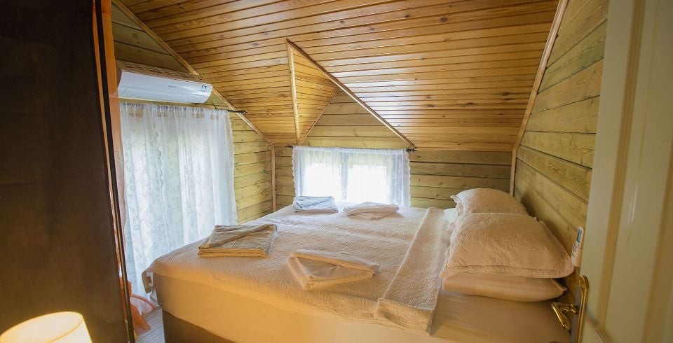 1. Yatak Odası : Çift kişilik yatakla beraber sizleri sıcak yaz günlerinde serin tutması için bakımları yapılmış klima ile komodin eşyalarınız için geniş elbise dolabı, makyaj masası, banyo ve lavabodan oluşmaktadır. Villamızın terasında jakuzi bulunmaktadır.