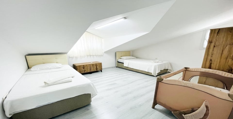 3.Yatak Odası: 2 adet tek kişilik yatak, klima, makyaj masası, komodin, elbise dolabı, banyo ve tuvalet ortak kullanımdır.
