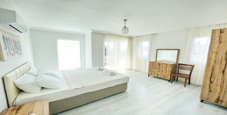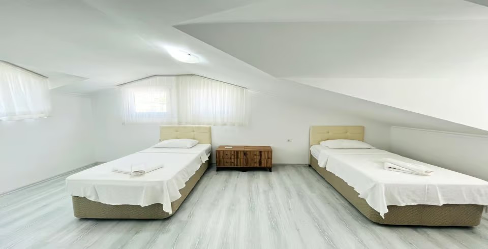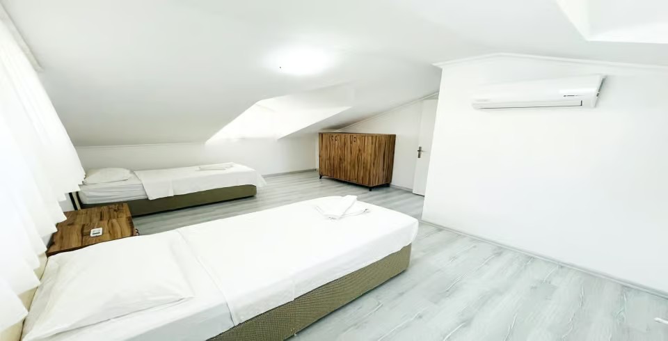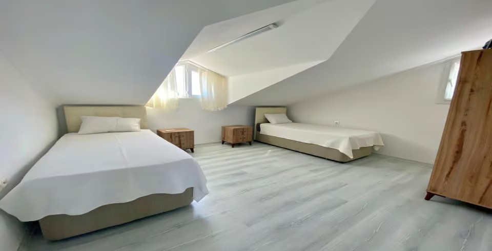3.Yatak Odası: 2 adet tek kişilik yatak, klima, makyaj masası, komodin, elbise dolabı, banyo ve tuvalet ortak kullanımdır.