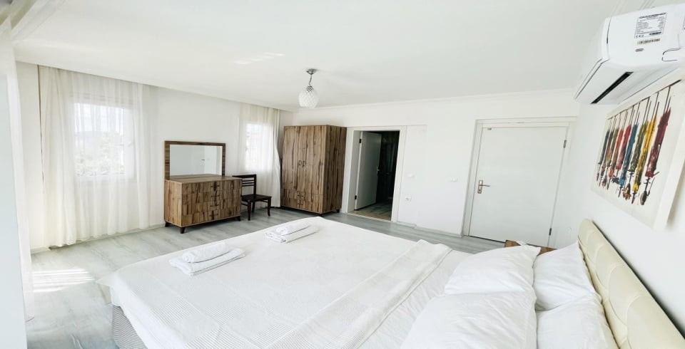 2.Yatak Odası: 1 adet çift kişilik yatak, klima, makyaj masası, komodin, elbise dolabı, banyo ve tuvalet bulunmaktadır.