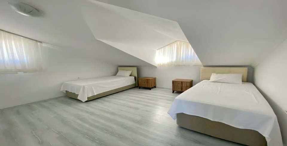 4.Yatak Odası: 2 adet tek kişilik yatak, klima, makyaj masası, komodin, elbise dolabı, banyo ve tuvalet ortak kullanımdır.