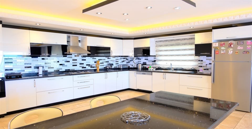 Mutfak : Buz dolabı, Bulaşık makinesi, Mikrodalga fırın, Elektrikli su sıtıcısı, Tost makinesi, Ekmek kızartma makinesi, Kahve makinesi, Su sebili, Fırın, 4’lü ocak, 8 kişilik yemek takımı, Tava, Tencereler, çatal, bıçak vb.