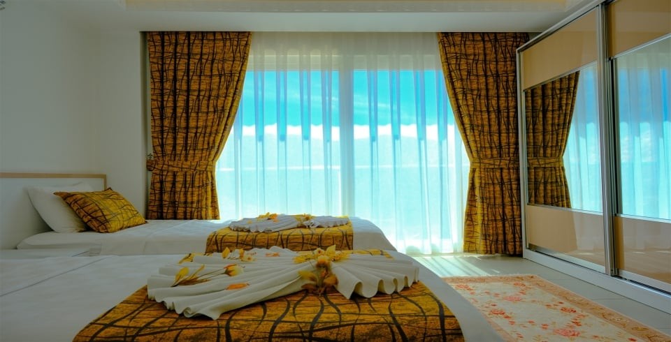 3. Yatak Odası : 2 Adet tek kişilik yatak, Elbise dolabı, Komidin, Makyaj masası, Klima, Banyo, Balkona çıkış bulunmaktadır.