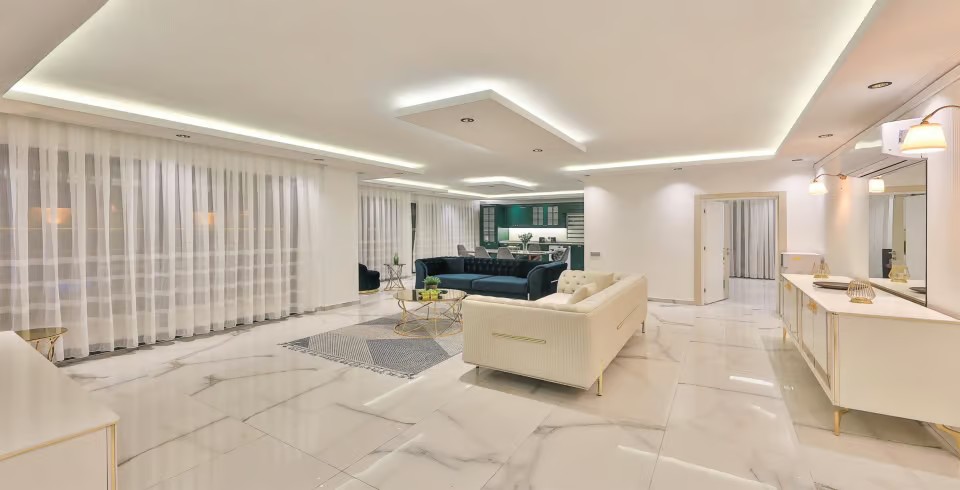 Salon : Oturma grubu, uydu alıcı, LCD TV, Klima, Wi-fi vb. ekipmanlar ve havuz bahçe katına çıkış bulunmaktadır.